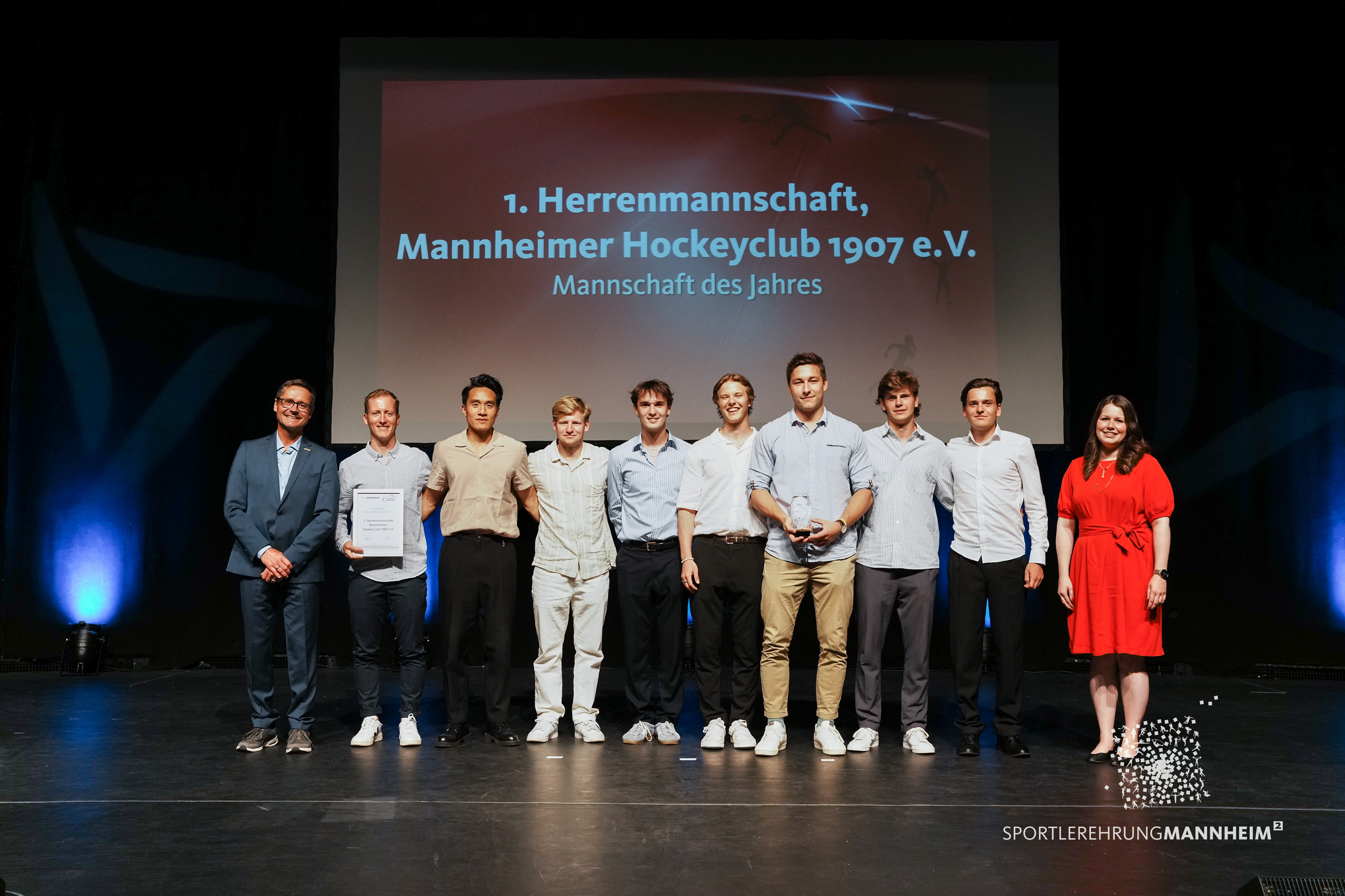 Auch das Hockey-Team des MHC freute sich sichtlich über die Wahl. „Es ist zwar schon mein bisher dritter Titel, aber er ist immer etwas Besonderes“, freute sich Danny Ngyuen vom deutschen Hallenhockey-Meister 2022. „Jeder einzelne hat seinen Wert, vor allem, weil es in Mannheim so große Konkurrenz gibt. Und er verbindet uns mit der Region.“